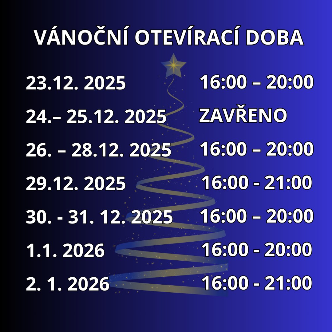 POZOR! MÁME VÁNOČNÍ OTEVÍRACÍ DOBU:
